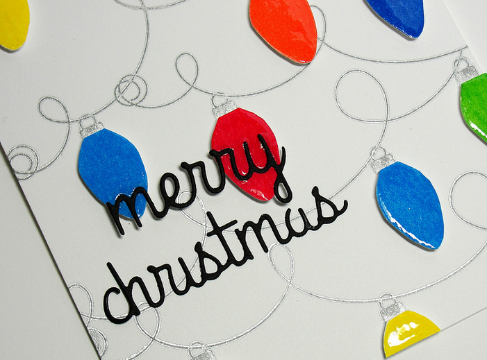 It's a really simple card, using the negative portion of the die-cut. This card could be easily mass produced for your Holiday card making. The Merry Christmas die comes in the set too. Here's a close-up so you can see just how cool it is.