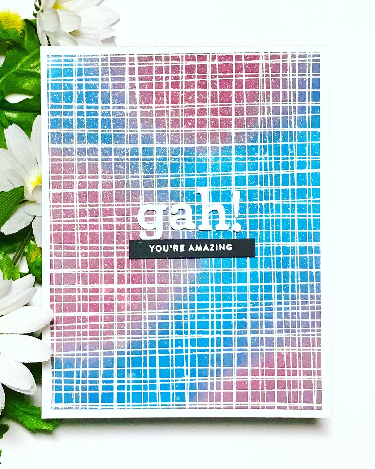 I received some awesome products to play with for the release and I had so much fun! On my first card, I used the, Sketchy Lines Background stamp with a couple of Distress Oxide Inks. The "gah" die-cut was created from the, Archie Jr Solid Alpha die set and the rest of the sentiment is from the fabulous, Tiny Words Encouragement stamp set.